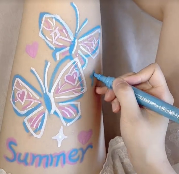 Today we will use acrylic pens for painting. We can choose the patterns we like. We can paint on paper, canvas, glass, ceramics, plastic, fabric, wood, metal and other material surfaces. But today we are going to paint on the skin. If you are going to a party or event and you want a little flash, then you can paint a little on the skin, that is the finishing touch.