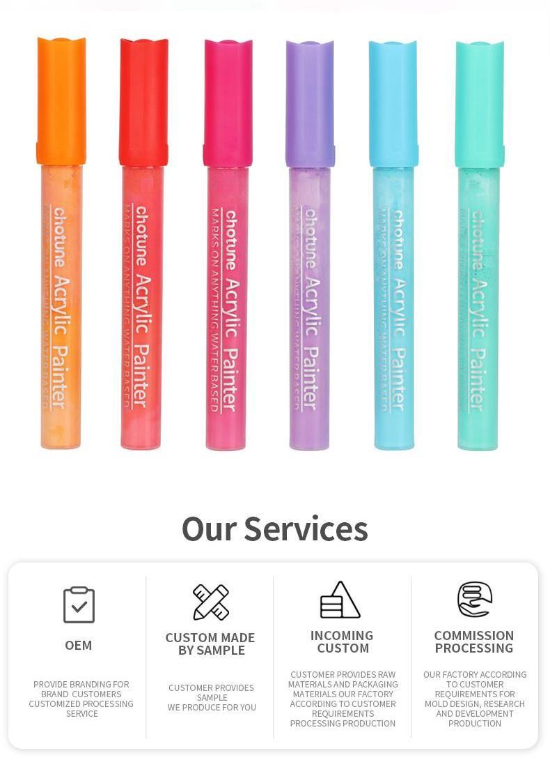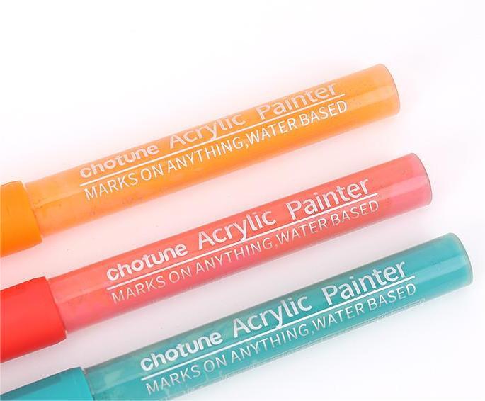 waterproof, light-resistant, good coverage in the dark surface, can be in paper, canvas, glass, ceramics, plastic, cloth, wood, metal and other materials surface writing.