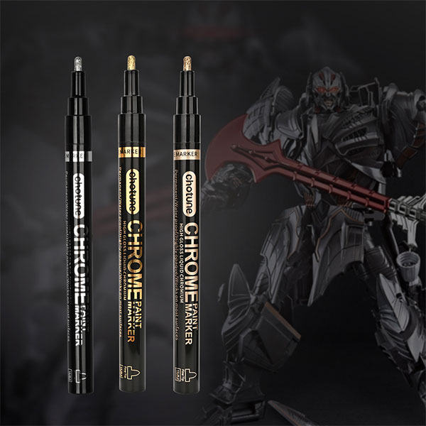 Chotune Gundam Colouring Pen.Gold, Silver, Copper, products are used for Gundam model colouring. Customise your own exclusive Gundam. Colour mirror reflection .We also have chotune brand stocking to better serve our distributors.You can replace the nib yourself. For more information parameters about the Gundam Colouring Pen, you can contact us.