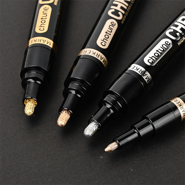 VERSATILE USE - Our metal markers have a 1mm carbon fiber nib from Japan and can be used on almost any surface, plastic eggs, paper, wedding stickers, Christmas cards, postcards, home planners, kraft paper, photo album stickers, surprise boxes, scrapbooking Accessories, bullet journals, black cardstock, DIY projects, Halloween pumpkin decorations and more.