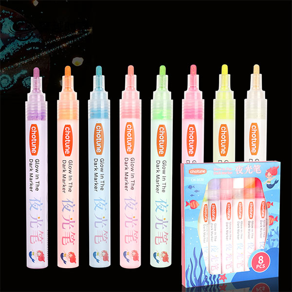 Chotune Glow in the Dark Marker. Luminous ink, high viscosity, low odor. Nib design for easy portability. Painting three-dimensional fashion, the effect is obvious in the luminous environment. Suitable for model, DIY creation and other color painting use. We also have chotune brand stocking to better serve our distributors. You can replace the nib yourself. For more information parameters about the Glow in the Dark Marker, you can contact us.