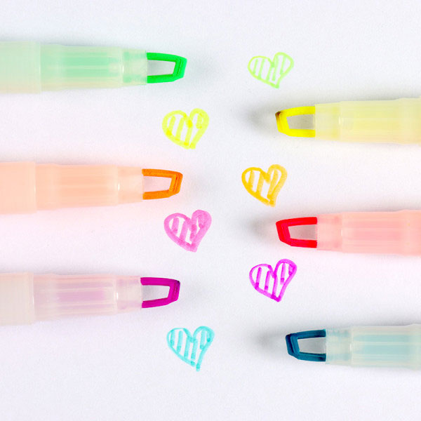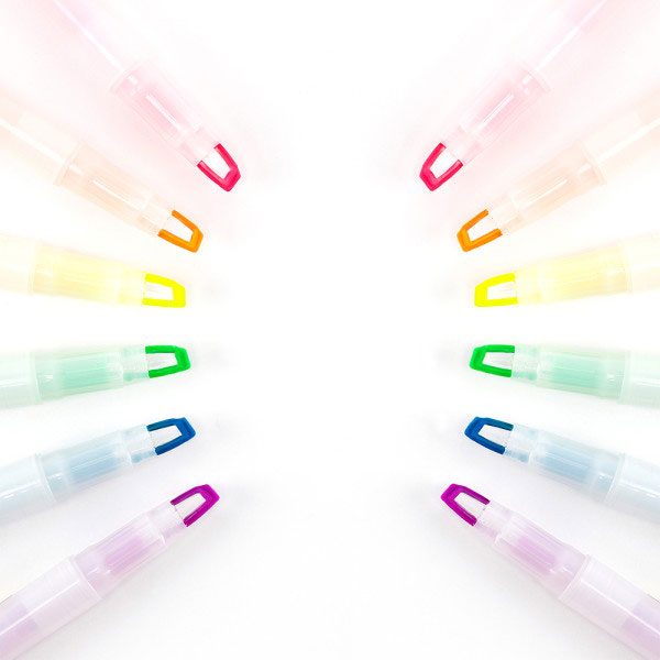 Send Inquiry【PREIMUM QUALITY】 Unique mild color softly strokes paper from transparent tip without bleeding through the page, useful for broad highlighting or fine underlining. Mild water resistant pigment ink is translucent and excellent for layering, employing visible chisel tips for hand lettering and creative applications.