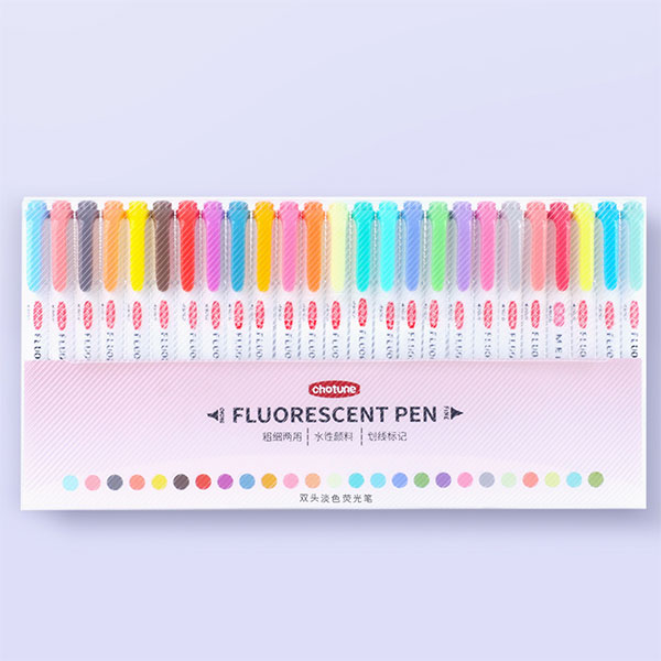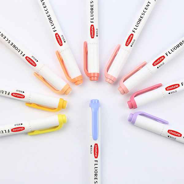 Chotune Dual Tip Light Highlighter Pen, which also called pastel highlighter pens and fluorescent colored marker Manufacturer wholesale OEM custom Chotune double end pen. We also have Chotune brand stocking to better serve our distributors. You can replace the nib yourself. For more information parameters about the Dual Tip Light Highlighter Pen, you can contact us.