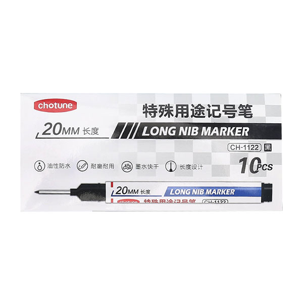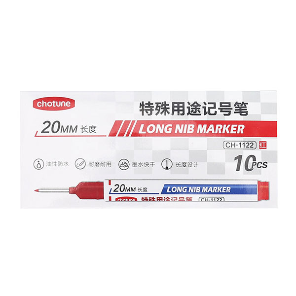 Chotune Marker for Woodworker. Long Nib Markers for Workers. Easier to go in deep crevices to mark. Professional tool pen. We also have Chotune brand stocking to better serve our distributors. You can replace the nib yourself. For more information parameters about the Marker for Woodworker, you can contact us.