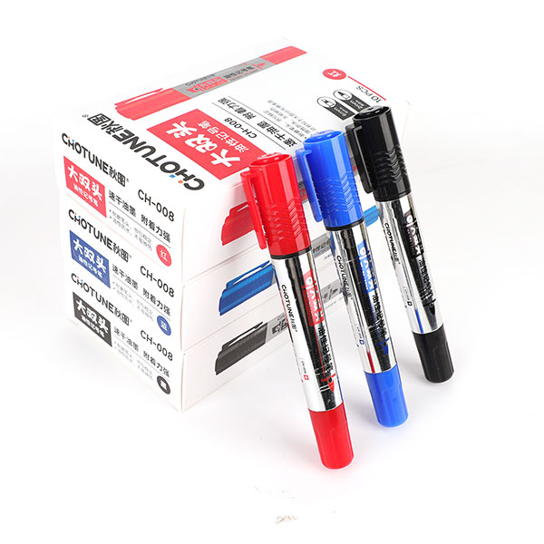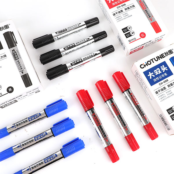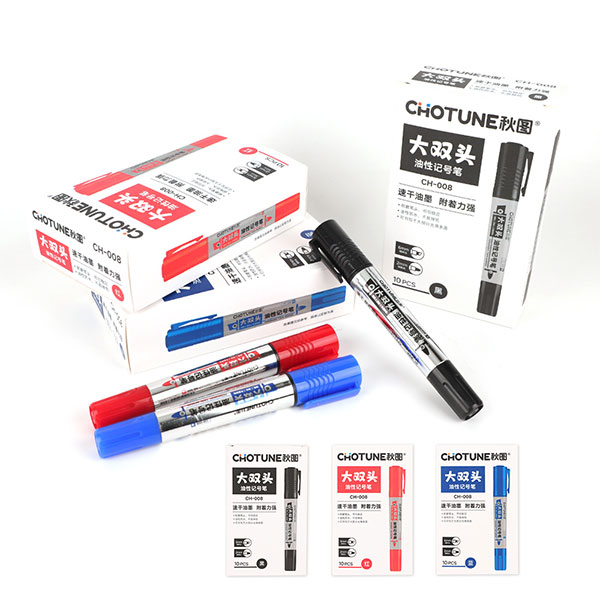 Chotune Double-ended Marker. POP poster pen, logistics marker, quick-drying ink, strong adhesion. Wear-resistant pen tip, oil-based waterproof. We also have chotune brand stocking to better serve our distributors. You can replace the nib yourself. For more information parameters about the Double-ended Marker, you can contact us.