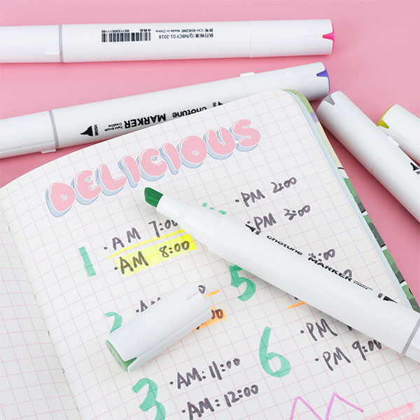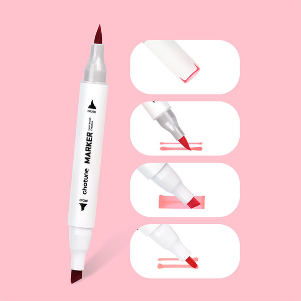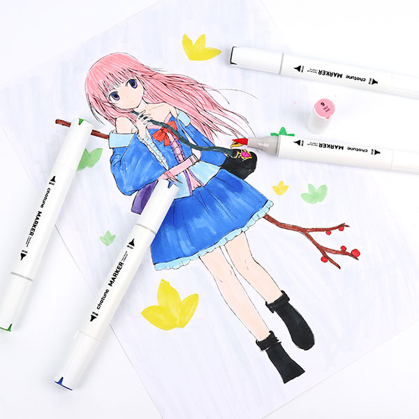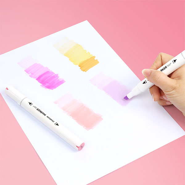 Alcohol White Barrel Round Bar Marker Pen with frosted shell, drawing when holding the pen feel better, the appearance is not easy to scratch in the process of use. With high quality nibs, the soft tip is not easily damaged during the drawing process, and the drawing is smoother.Chotune brand is in stock. For more information parameters about the Alcohol White Barrel Round Bar Marker Pen, you can contact us.