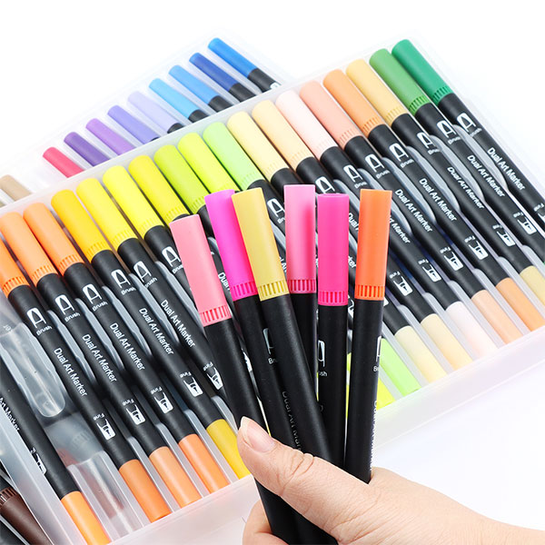 Double Tip Watercolor Pens Manufacture wholesale OEM custom Chotune Flexible Real Brush Tips painting pen Double-ended Black Barrel Watercolour Marker Pen High-end quality and plenty of ink. Provide exclusive customisation service.We also have chotune brand stocking to better serve our distributors. For more information parameters about the Double-ended Black Barrel Watercolour Marker Pen, you can contact us.