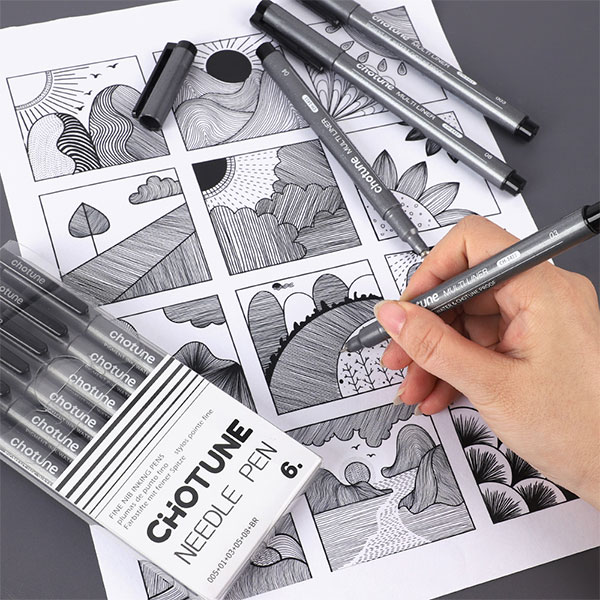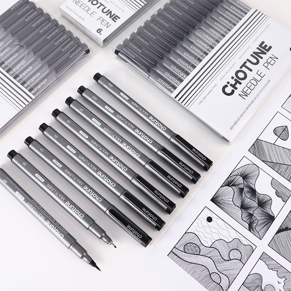 Chotune Interchangeable Nibs Black Needle Marker. Fineliner Pen for black paper, card making, DIY photo albums, metal paint pens, art rock painting, fine nib.We also have chotune brand stocking to better serve our distributors.You can replace the nib yourself. For more information parameters about the Interchangeable Nibs Black Needle Marker, you can contact us.